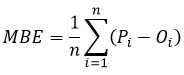The Mean Bias Error (MBE) serves as a metric to gauge the average bias present in a model's predictions. While it's not typically employed as the sole measure of model error, as it may not adequately capture high individual errors in prediction, MBE plays a crucial role in identifying and quantifying the average bias within the model's outputs. Positive bias in a variable (e.g., wind speed) indicates an overestimation of data from datasets, while negative bias signifies underestimation. Similarly, for directional variables like wind direction, a positive bias corresponds to a clockwise deviation, and a negative bias indicates counterclockwise deviation. Evaluating MBE alongside other metrics like correlation coefficients helps provide a more comprehensive understanding of model performance. Lower error values and higher correlation coefficients, particularly for directional variables, are indicative of superior model accuracy.